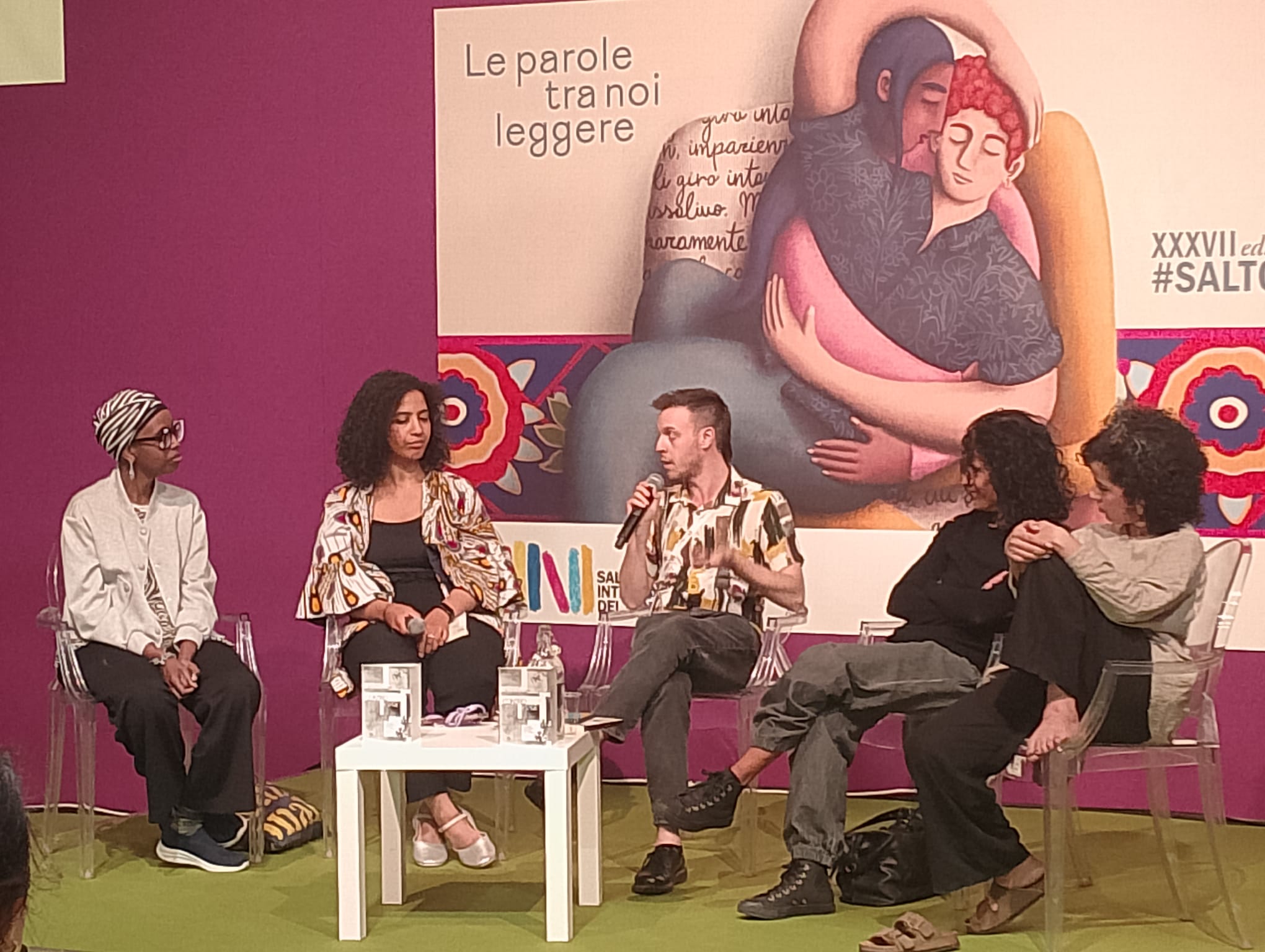 Un dialogo tra due generazioni di donne, autrici e voci in diaspora, che ancora troppo spesso si tende a etichettare come categoria “altra” nel vasto universo editoriale italiano. Ma se scrivere è di per sé un atto politico, la letteratura può diventare uno strumento per uscire dalle maglie oppressive di una visione bianco-centrica e raccontare un presente reale, in una direzione diversa dall’unica che viene considerata possibile.